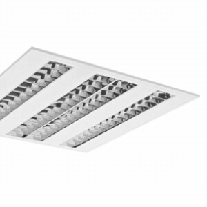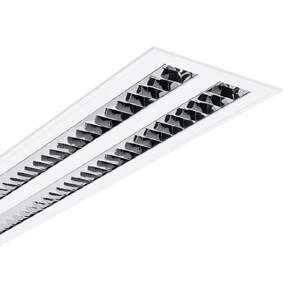 Parabolic louvre of specular anodized aluminium, with a high coefficient of reflection.
